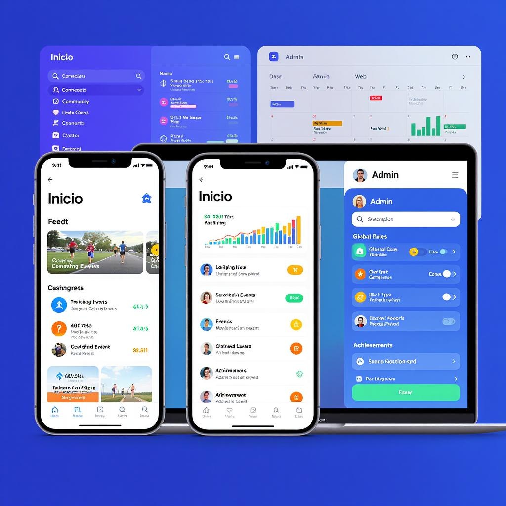La aplicación estará disponible en iOS, Android y versión web, con flujos diferenciados para usuarios, organizadores y administradores. El enfoque será híbrido entre entrenamiento, comunidad y autogestión deportiva, con paneles personalizados y funcionalidades diseñadas para: