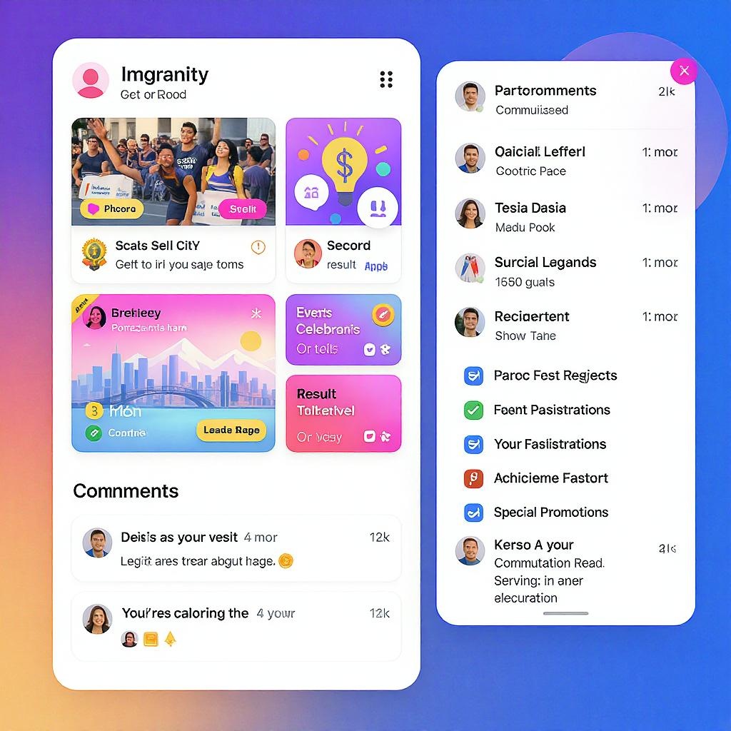 Inicio (feed dinámico): con próximos eventos, publicaciones, novedades y logros.