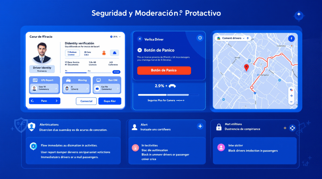 Además, la plataforma incorpora elementos de gamificación y recompensas, una experiencia de usuario envolvente, con animaciones y microinteracciones. El modelo de negocio es flexible y escalable, combinando comisiones por viaje, suscripciones premium para conductores y colaboraciones con empresas.